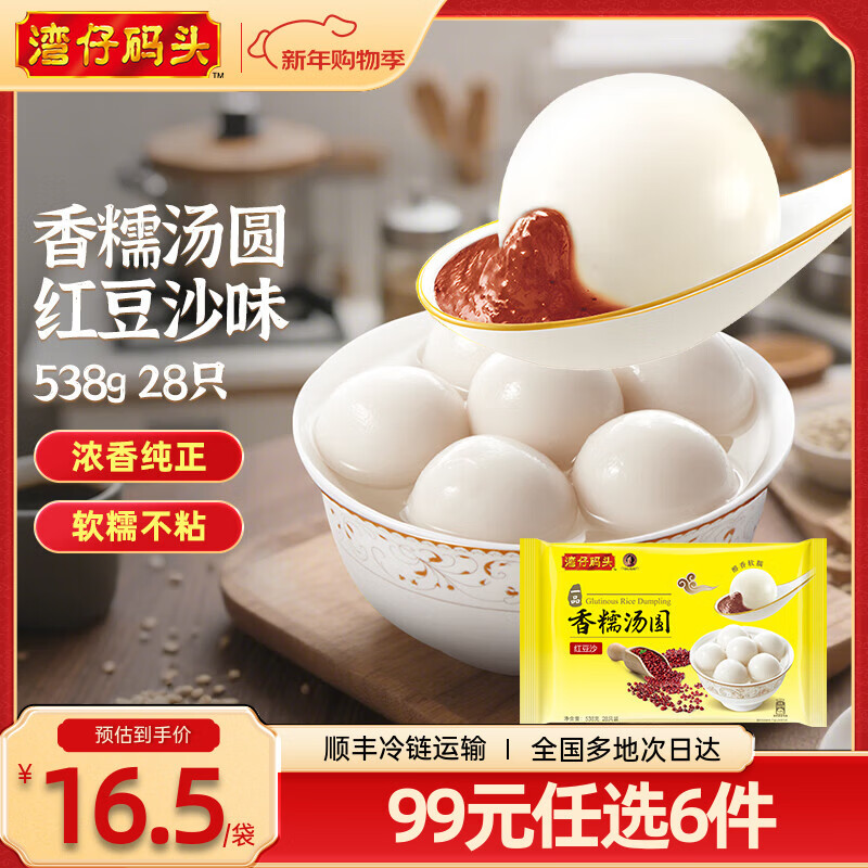 湾仔码头香糯红豆沙汤圆538g28只汤圆元宵早餐点心速冻生鲜食品年货节送礼