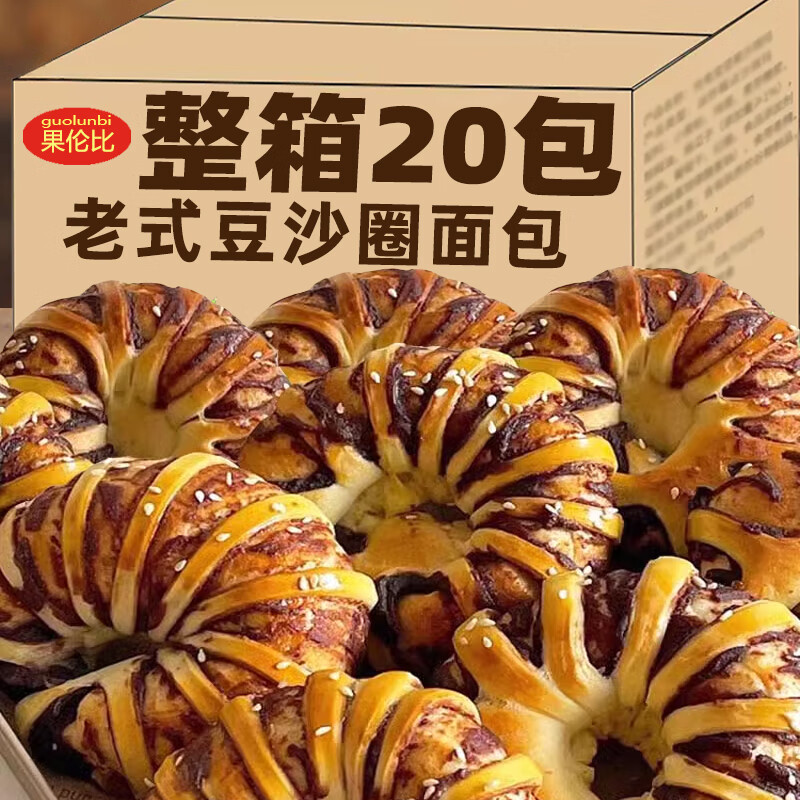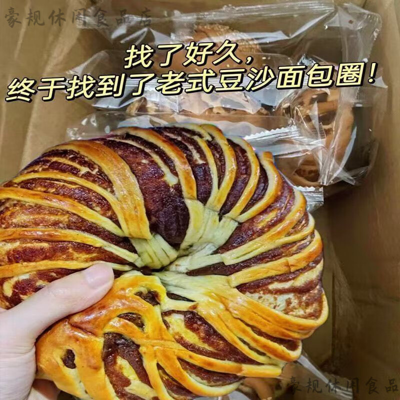 红豆沙面包整箱夹心手撕软面包学生营养早餐糕点零食老式豆沙面包 [试吃]豆沙圈面包2包