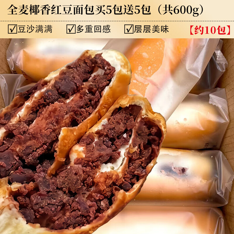 红豆沙面包全麦椰香红豆整箱早餐椰蓉夹心糕点心零代购 豆沙满满【约10包】全麦椰香红豆