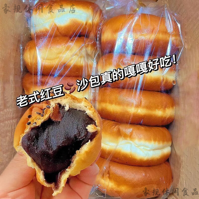 红豆沙面包整箱早餐夹心软面包充饥代餐蛋糕点零食老式豆沙馅面包 [一斤尝鲜]老式豆沙夹心面包50 500g