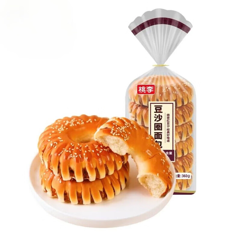 桃李豆沙圈面包 红豆沙馅老式大饼 主食早餐宿舍零食办公室小糕点 豆沙圈面包360g