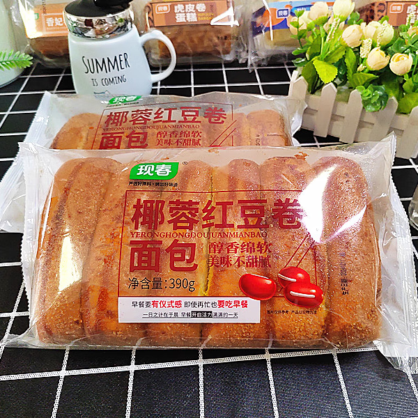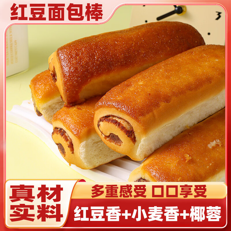 现春椰蓉红豆卷面包营养早餐糕点豆沙馅夹心手撕椰蓉面包休闲零食 红豆卷面包390g*3包共18条送零食