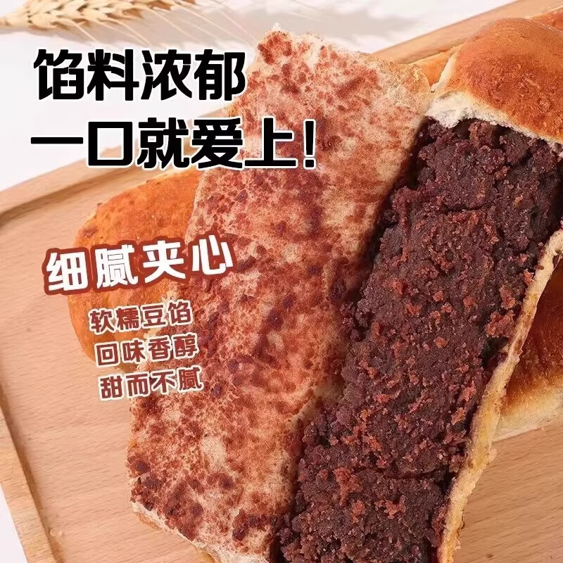 红豆沙面包整箱早餐夹心软面包充饥代餐蛋糕点零食老式豆沙馅面包 [一斤尝鲜]老式豆沙夹心面包50 500g