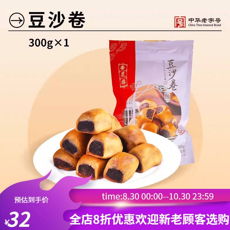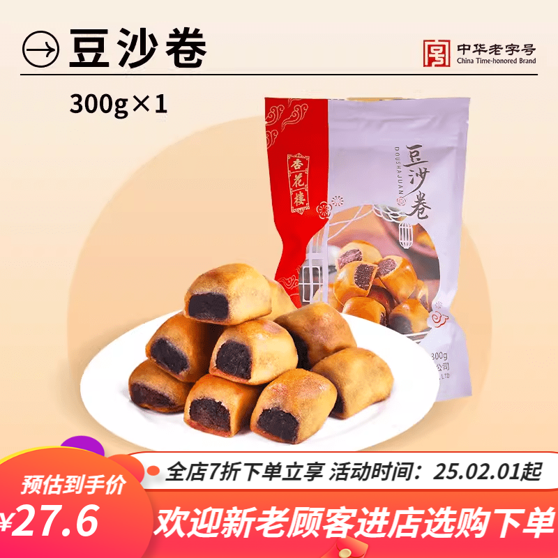 杏花楼特产豆沙面包小糕点豆沙卷红豆馅小面包点心小零食伴手礼 豆沙卷 300g 300g