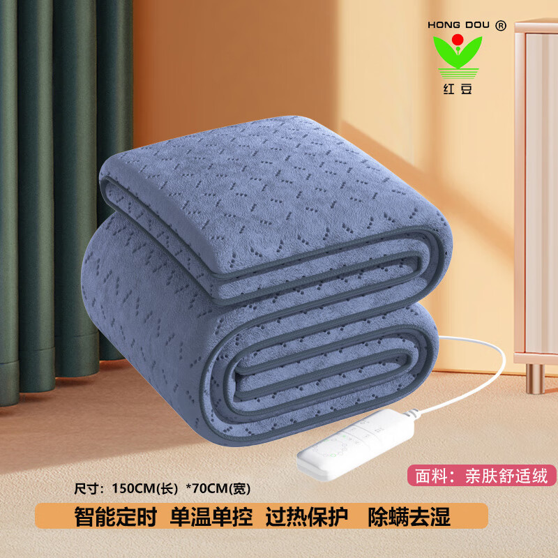 红豆HongDou电热毯智能除螨定时双温双控电热毯 4D工艺-单温单控长1.5宽0.7米