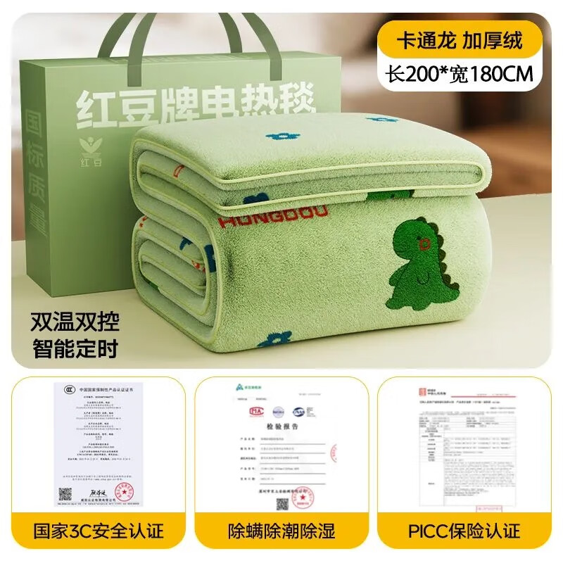 红豆电热毯单双人电褥子家用加大双控调温学生宿舍官方旗舰 恐龙萌宠【定时+除螨】200*180CM