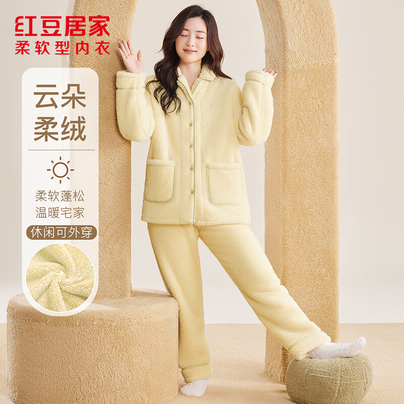 红豆居家睡衣男女士云朵绒保暖居家服加厚暖绒不臃肿可外穿居家服 女士青果绿 L 170/92A