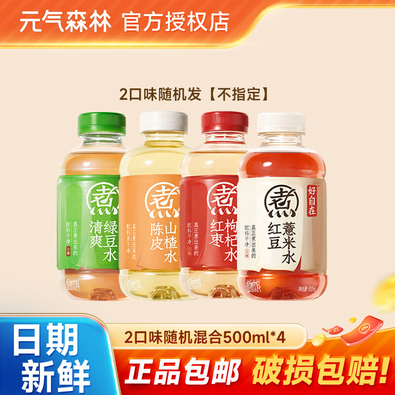 元气森林好自在 元气自在水红豆薏米水红枣枸杞绿豆水 0糖0脂植物饮料 2口味随机混合500ml*4瓶