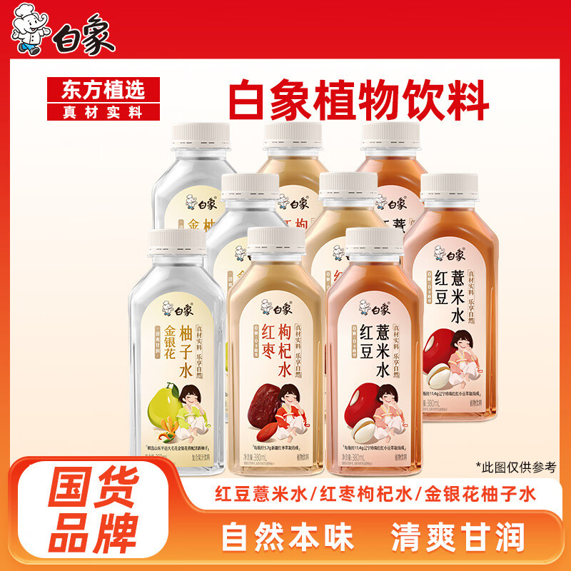白象 红豆薏米水红枣枸杞水金银花柚子水380ML*9瓶混合口味