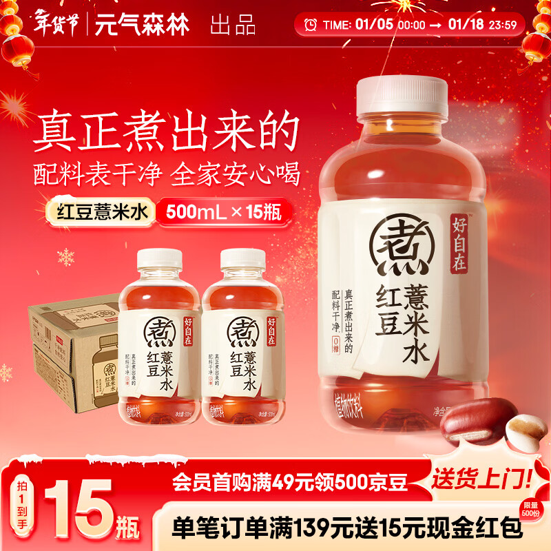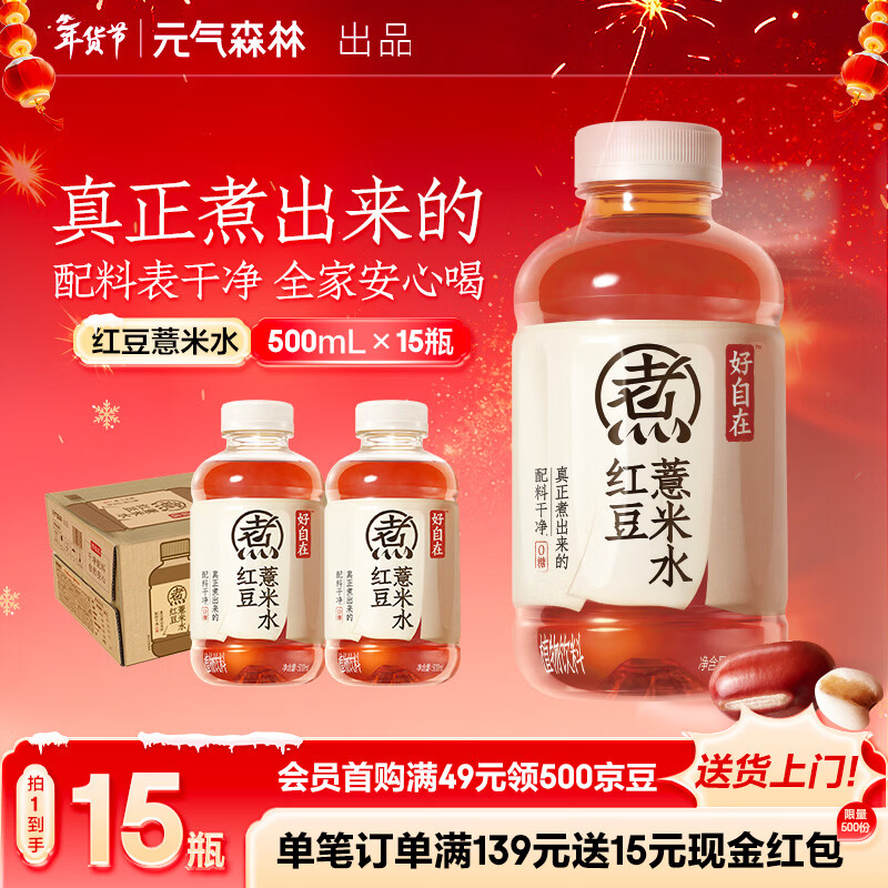 元气森林好自在红豆薏米水 自在水植物饮料茶饮料饮品整箱装 送礼500ml 好自在红豆薏米水15瓶