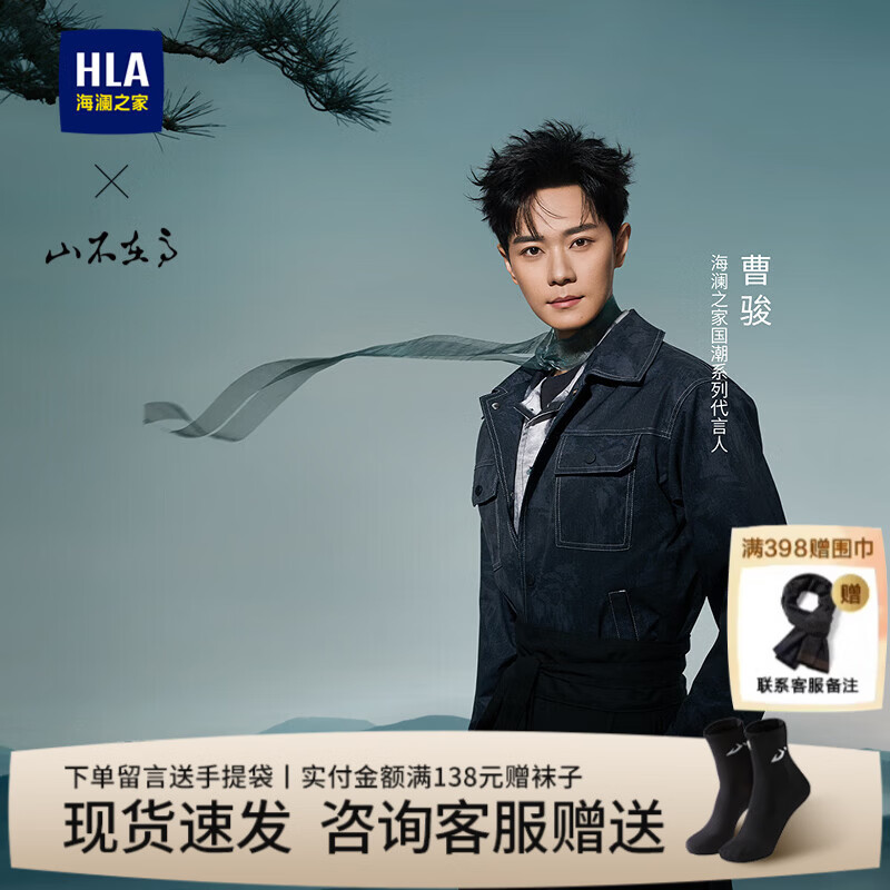 海澜之家(HLA)夹克男装春秋季山不在高系列水墨满身印花翻领休闲上衣服男士外套 藏青花纹99 L /175建议69-75kg