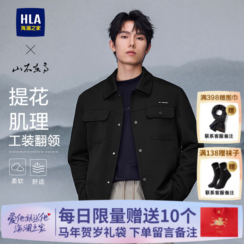 海澜之家(HLA)夹克男装25春秋季山不在高系列翻领工装风肌理提花上衣服男士外套 黑色9C L /175推荐69~75kg