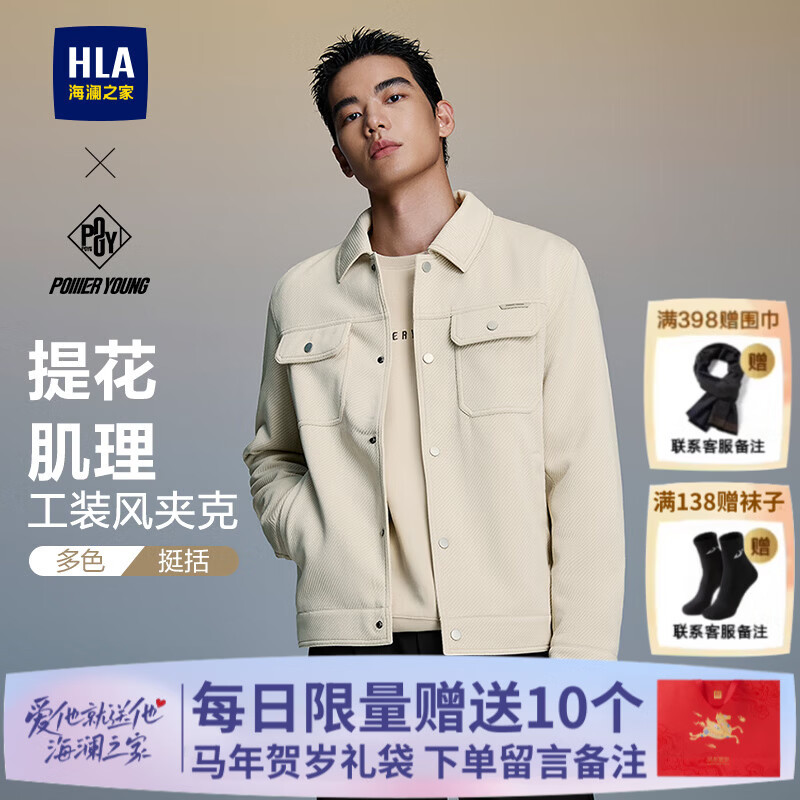 海澜之家(HLA)夹克男装25春秋季POWER YOUNG工装风翻领条纹肌理上衣服男士外套 米杏条纹61 L /175推荐69~75kg