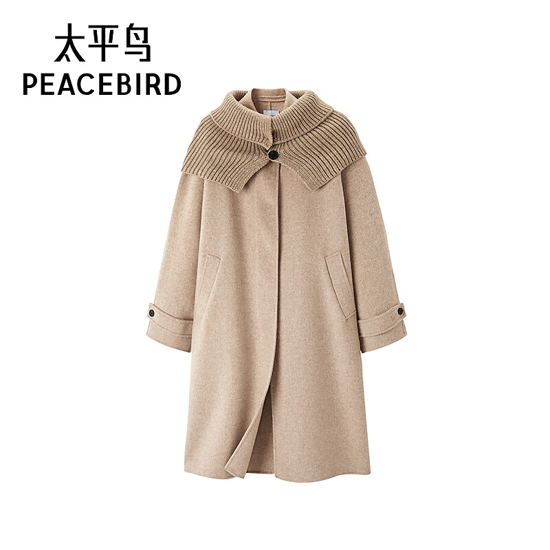 太平鸟女装毛呢大衣冬季小翻领全羊毛大衣设计感质感 驼色 L