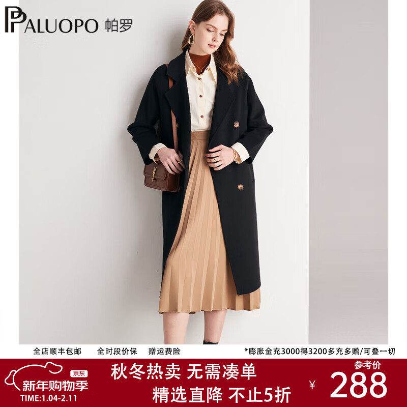 帕罗(PALUOPO)秋冬新款女装毛呢大衣时尚优雅翻领系腰带显瘦百女式羊毛外套 45%羊毛102 M 160/84A
