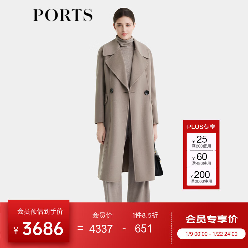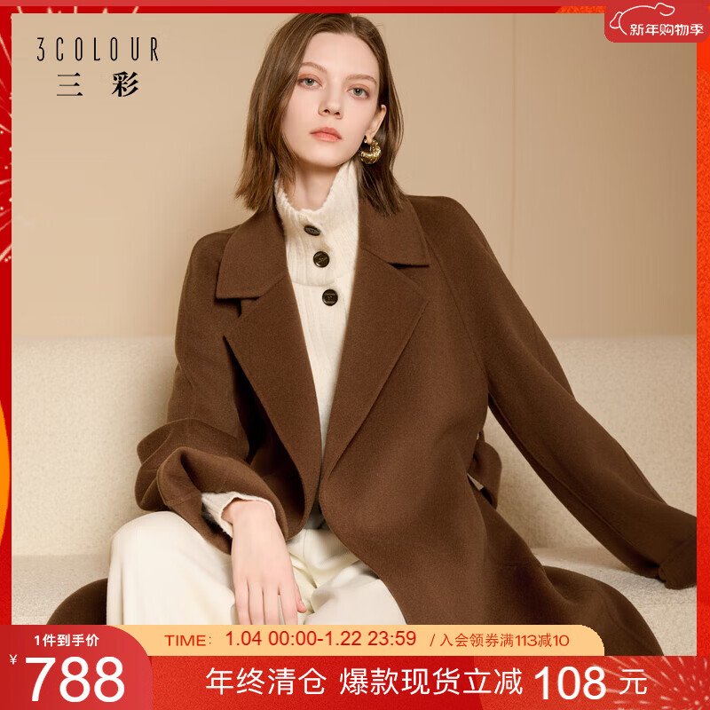 三彩【匠心大衣】100绵羊毛三彩2025冬季新款翻领双面毛呢外套长款女M