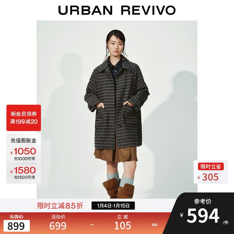 UR2025冬季新款女装休闲翻领撞色格纹口袋大衣UYL150140 多色 (偏宽松) XS