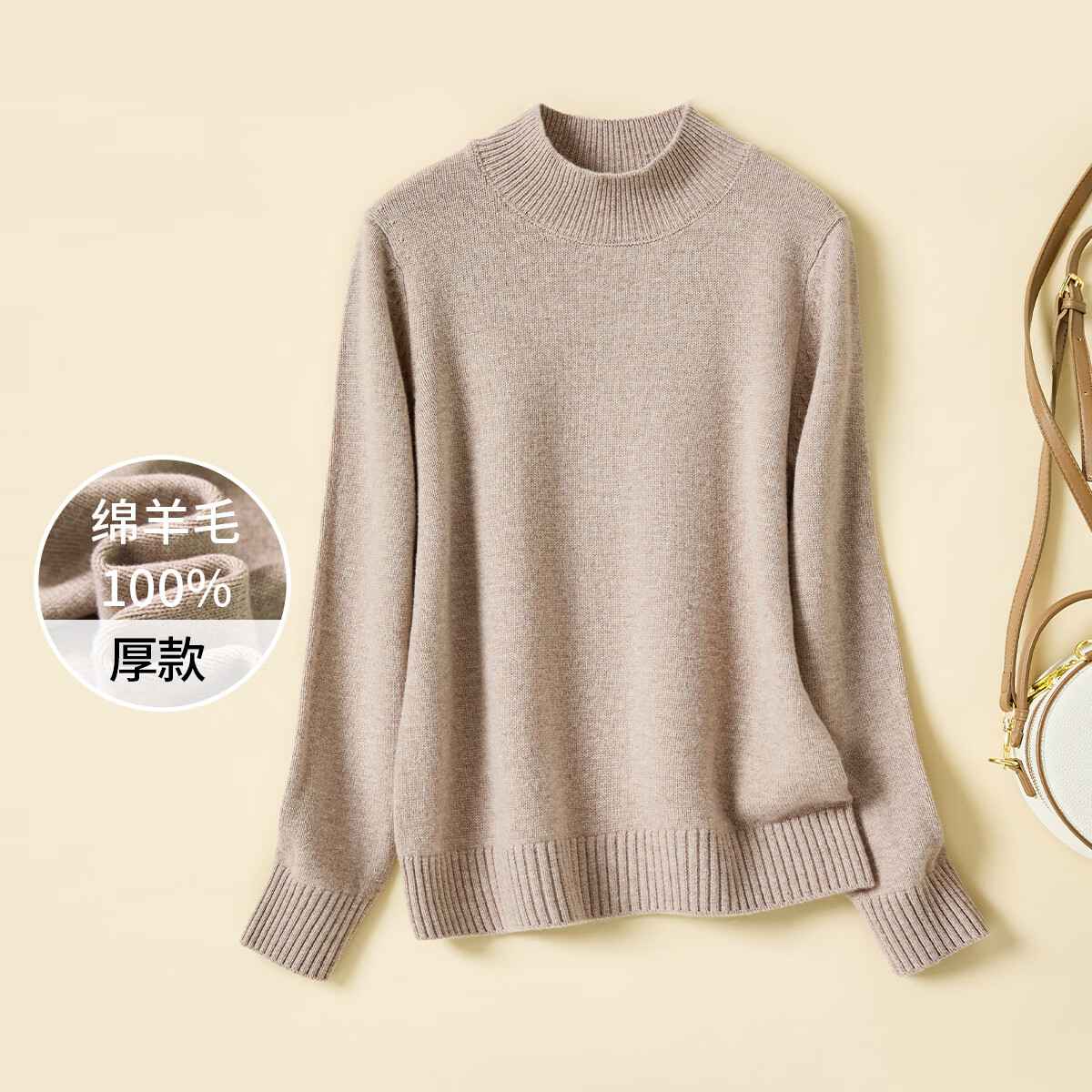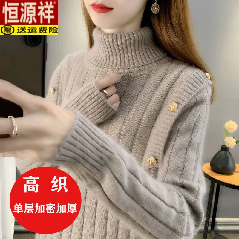 恒源祥2025年秋冬新款加厚两翻领毛衣内搭打底衫时尚洋气上衣高领女装潮 浅咖 加厚 XL