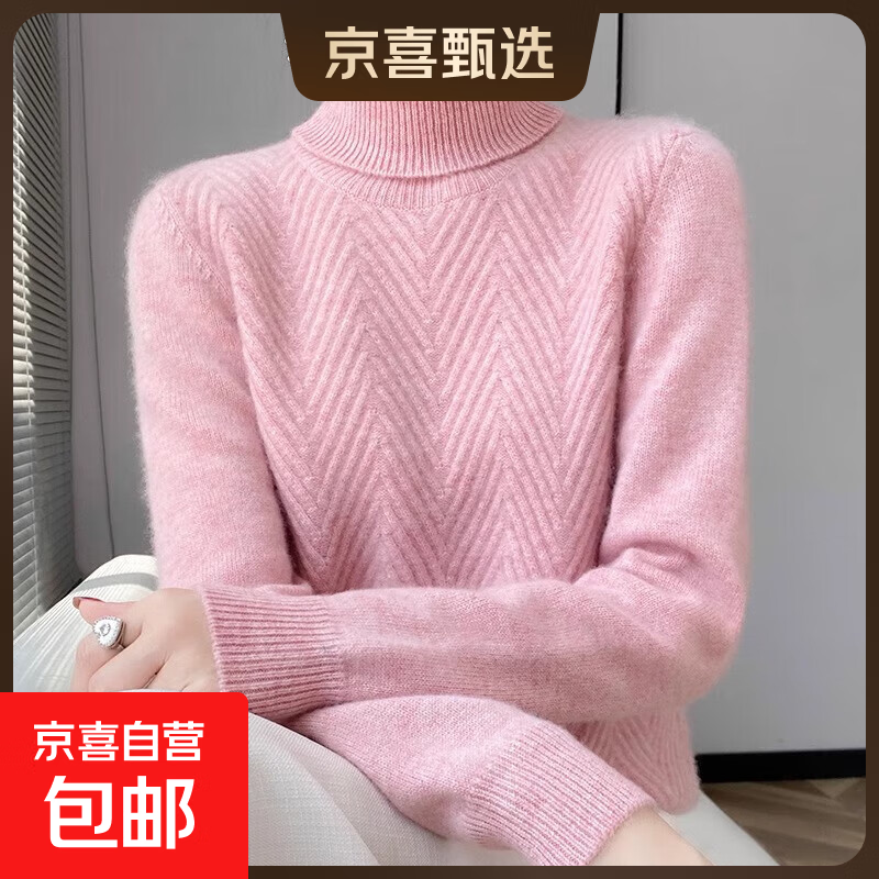加厚毛衣女秋冬季新款宽松舒适内搭打底衫女翻领厚款针织衫高领女 粉色 加厚 L 110-120斤穿
