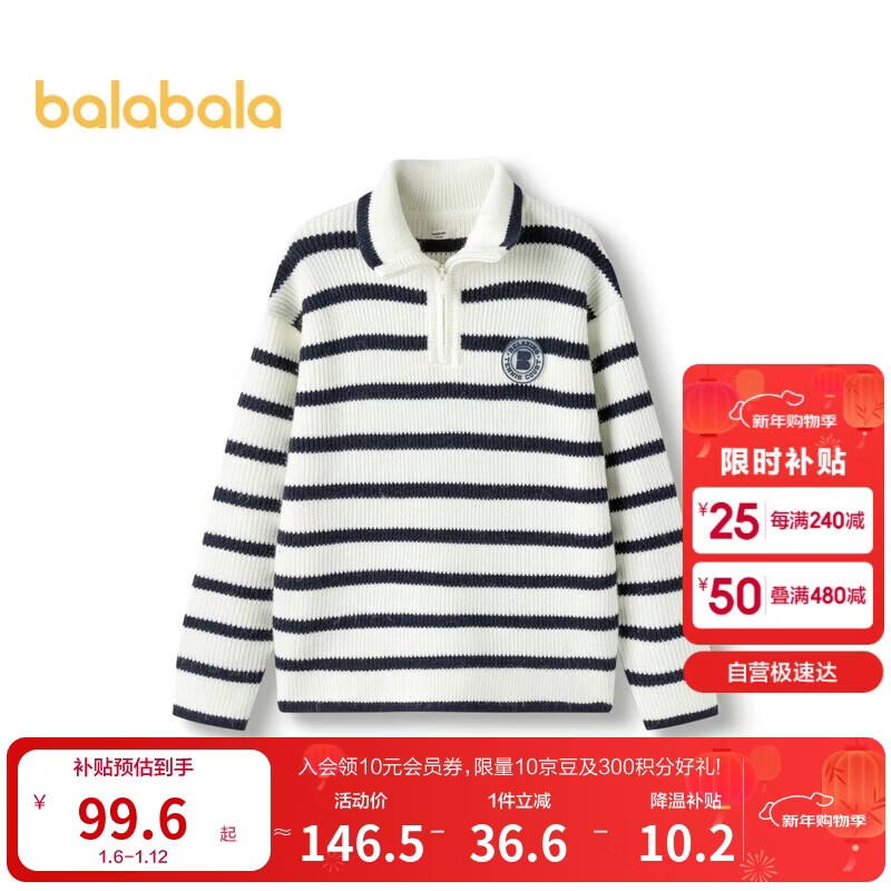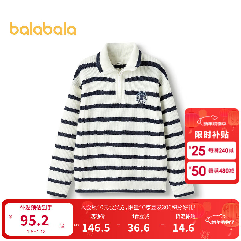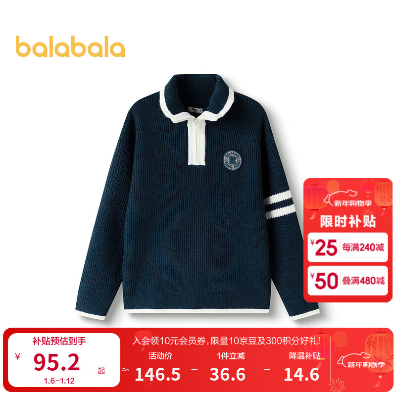 巴拉巴拉童装儿童毛衣秋冬装男童女童宝宝翻领毛衫针织衫 蓝白色调00481 140cm
