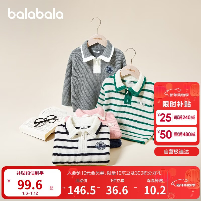 巴拉巴拉童装儿童毛衣秋冬装男童女童宝宝翻领毛衫针织衫