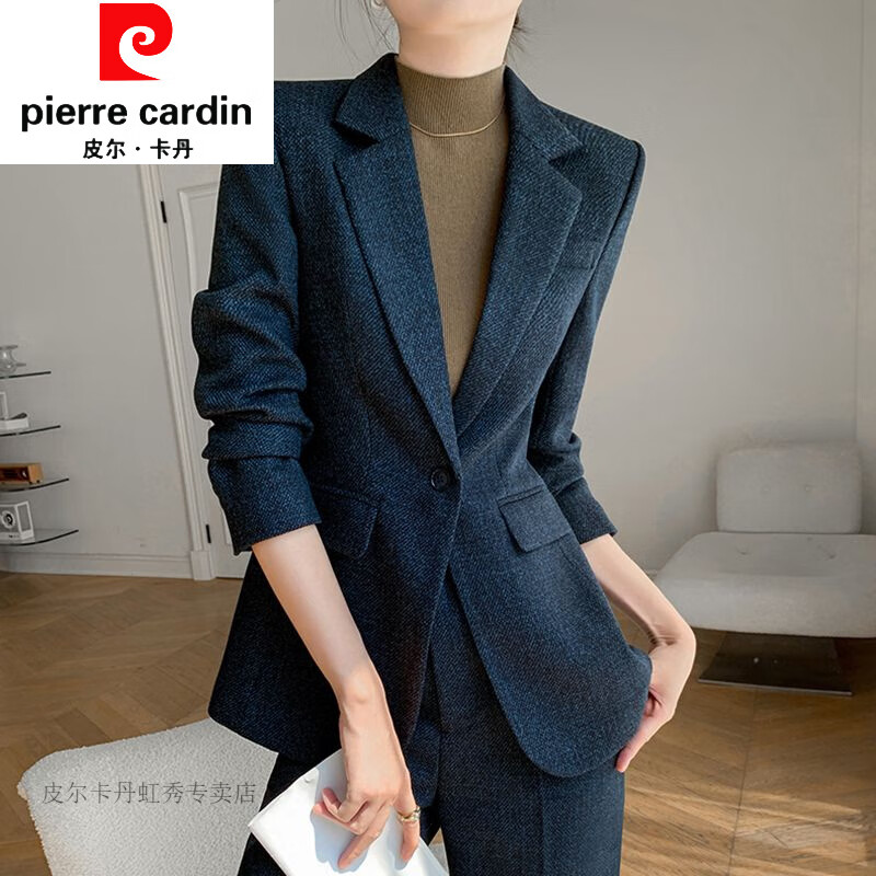 皮尔卡丹(pierre cardin)轻奢毛呢西服女套装冬新款时尚阔腿裤气质职业装西装套装工作服优 YS藏青色【西装单上衣】 S