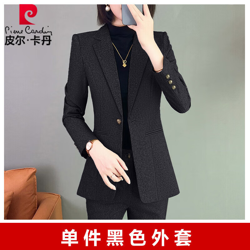 皮尔卡丹职业装西服套装女秋冬新款时尚正装高端气质小西装女神范工作服 单件黑色长袖外套 XL【110斤~119斤】