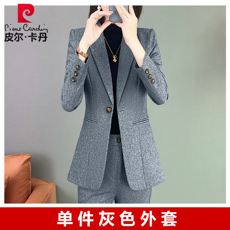 皮尔卡丹职业装西服套装女秋冬新款时尚正装高端气质小西装女神范工作服 单件灰色长袖外套 L【100斤~109斤】