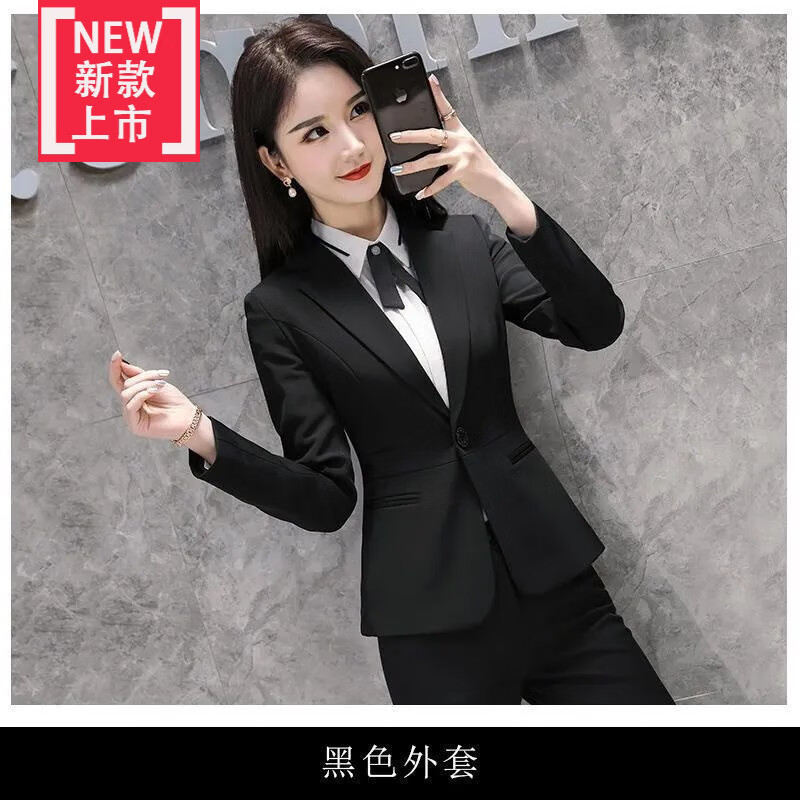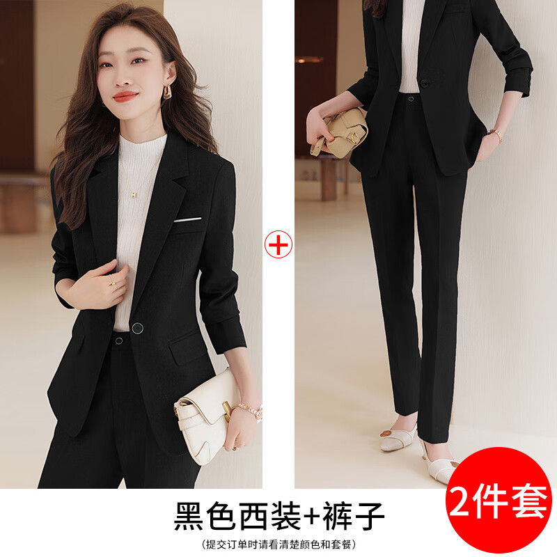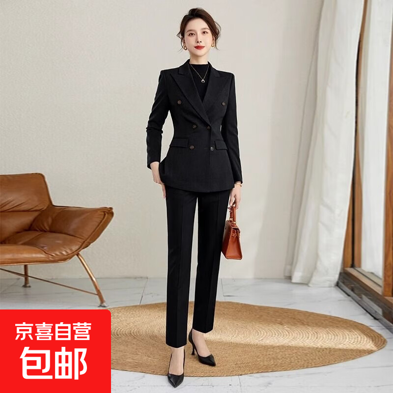 黛维亚高端西装套装女职业装正装秋冬新款时尚气质女神范工作服西 黑色西装+直筒裤 L 【建议105-115斤】
