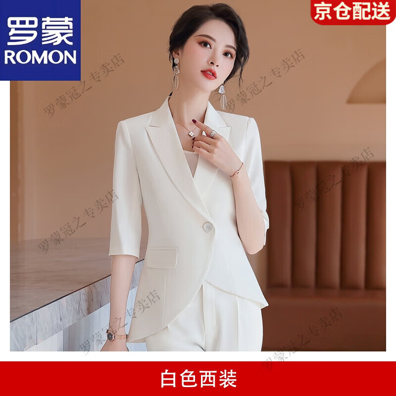 罗蒙(ROMON)白色西装女套装气质春季薄款西服高端职业装气质女神范时尚工作 白色西装 S