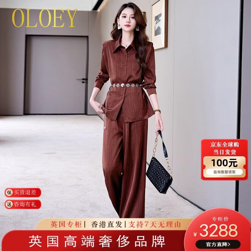 OLOEY奢侈高端品牌职业装气质女神范高端时尚套装女新款春秋洋气阔腿裤 红色 均码 M