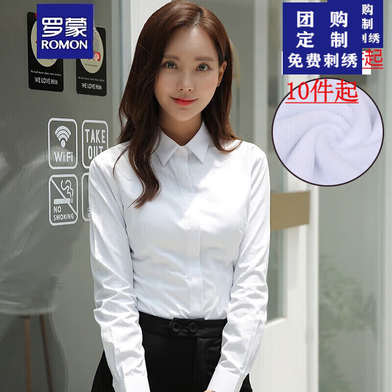 罗蒙加绒衬衫女长袖保暖衣秋冬新款职业装工作服打底修身加厚正装衬衣 白色BN1088-08 36 /M【95-105斤】