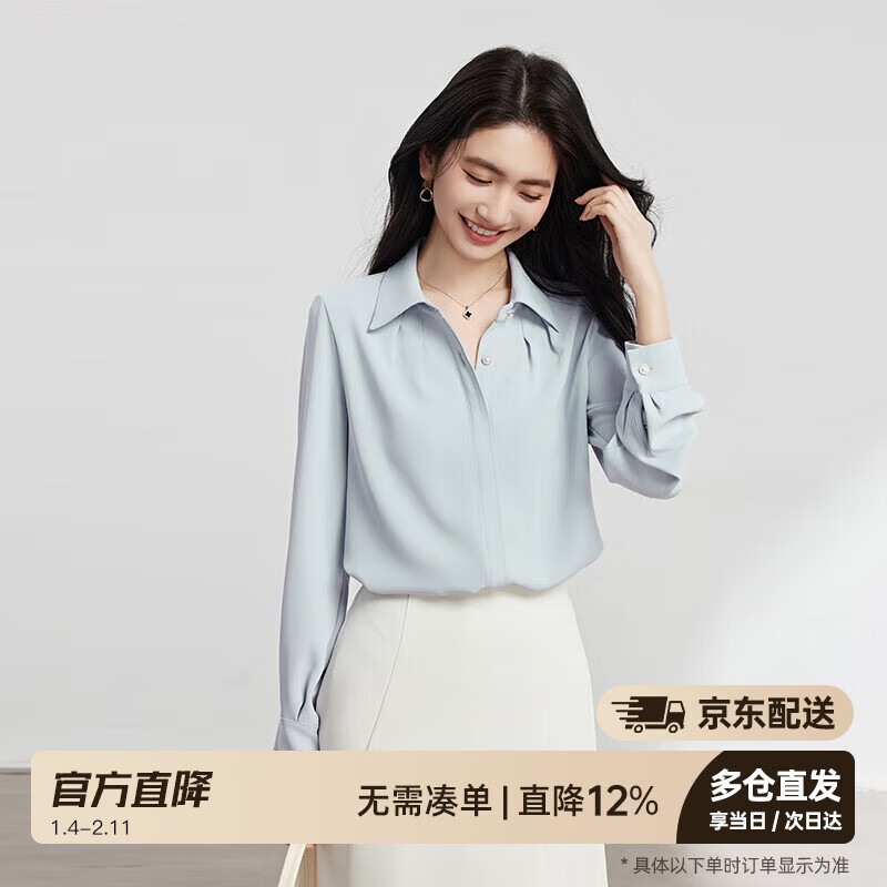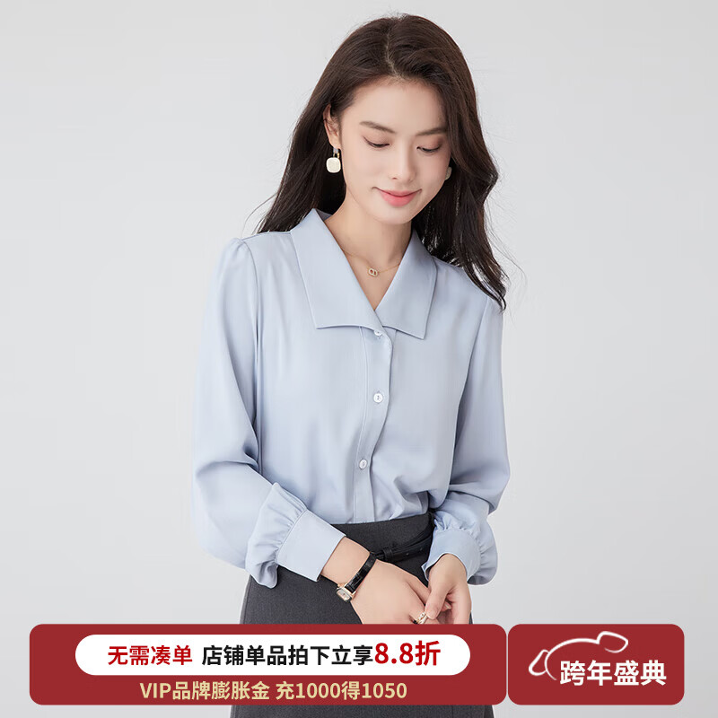 伯德小姐蓝色衬衫女职业装高级感面试正装上衣小个子日常通勤内搭长袖衬衣