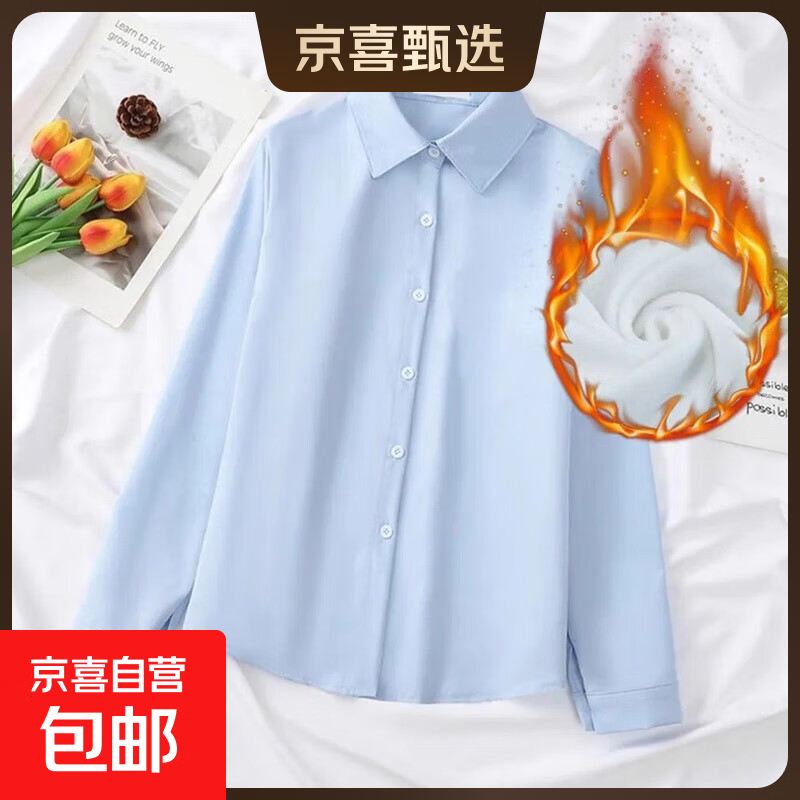 2025秋冬加绒加厚白衬衫女长袖修身职业装一体绒保暖百搭打底衬衣 B121白色加绒【明扣-方领】 L (推荐【100-110斤】)