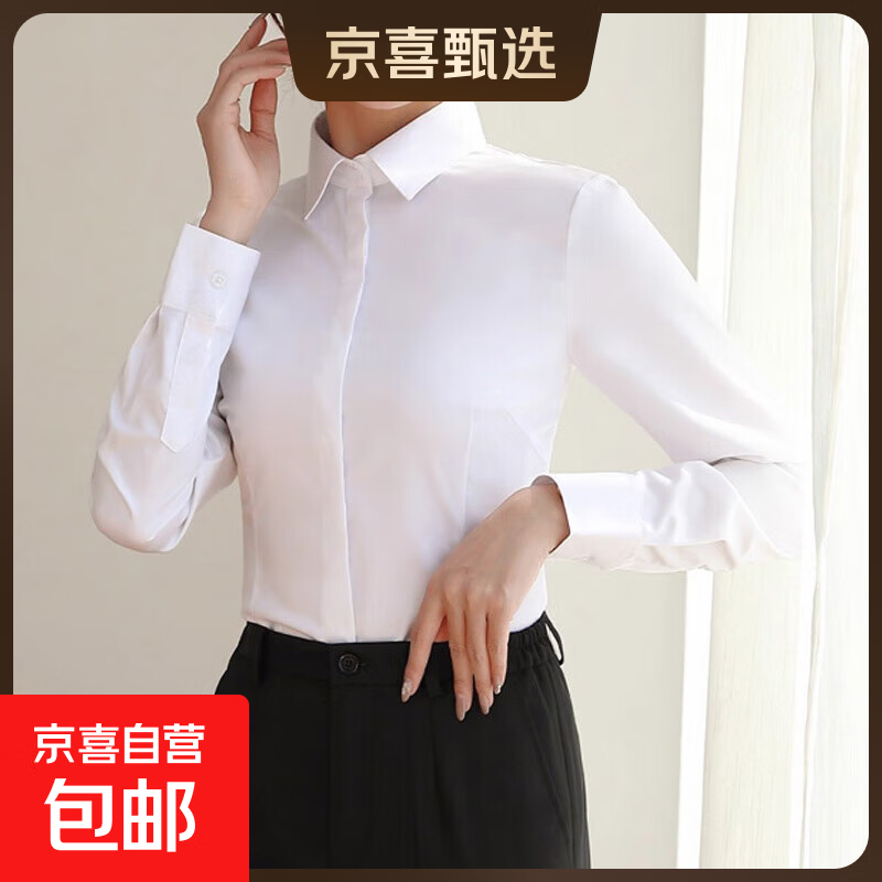 EAEOVNI长袖衬衫女商务免烫春夏职业装白色正装银行衬衣面试工作服修身OL 纯白色【方领】 35 【78-88斤】