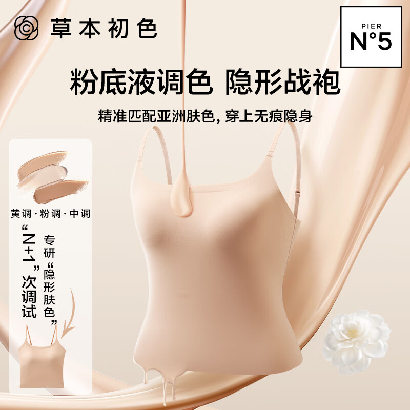 草本初色吊带背心女粉底液隐形无痕带胸垫轻薄细肩带25年新款背心秋冬送礼