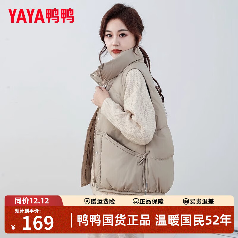 鸭鸭(YAYA)羽绒马甲女外穿2025年秋冬季新款短款时尚马夹背心保暖羽绒服外套 奶茶棕 M