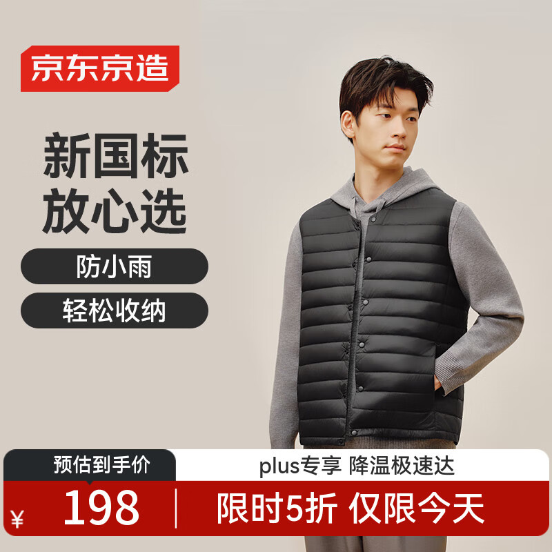 京东京造【零压系列】轻薄羽绒服男外套冬季 防钻绒马甲背心男 曜石黑 L