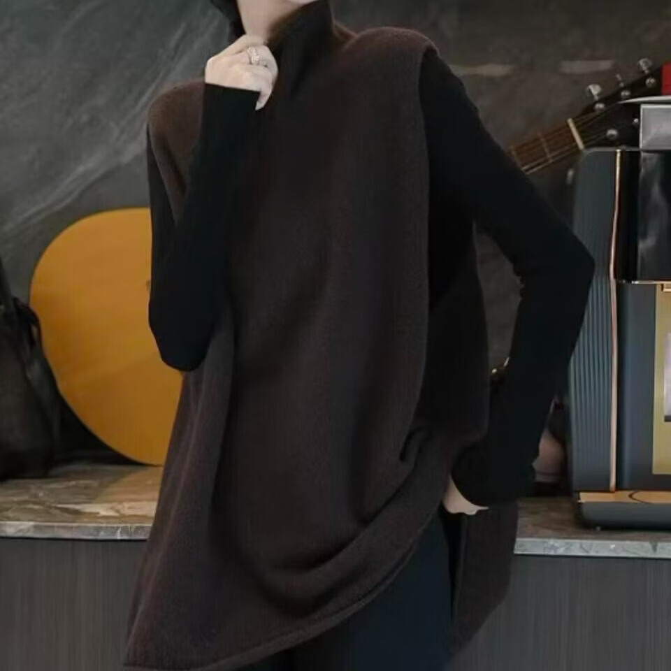 【爆款热卖】超减龄气质加厚立领无袖针织马甲叠穿毛衣背心坎肩 咖啡色 L 【建议100-120斤】