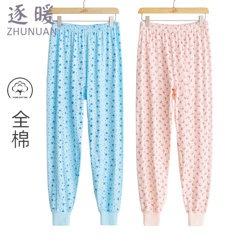 逐暖2条装中老年人纯棉秋裤女士加肥大码妈妈高腰老式棉毛裤衬裤线裤 肤花+蓝花(印花随机) 【130/3XL】建议135-165斤