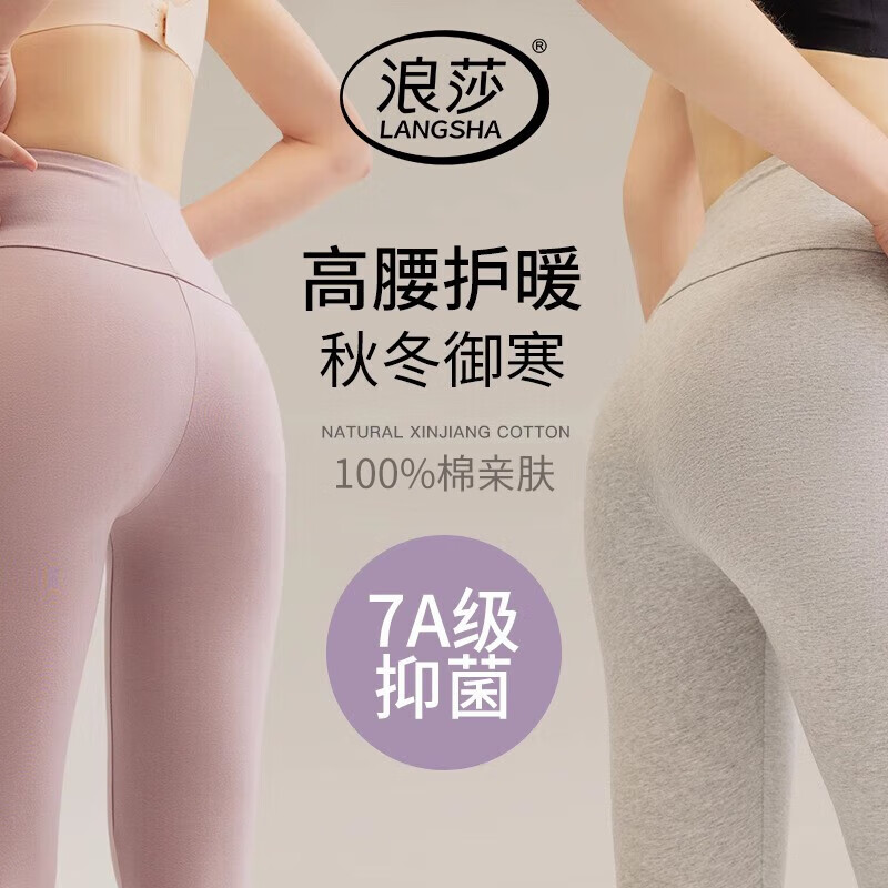 浪莎秋裤女纯棉高腰护腰7A抑菌防螨女士轻暖型线裤保暖衬裤单条