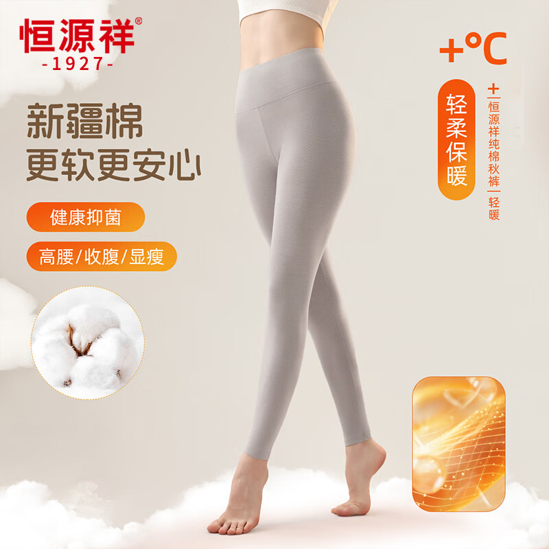 恒源祥【秋季轻暖系列】高腰收腹秋裤女纯棉打底裤秋冬衬裤线裤棉毛裤
