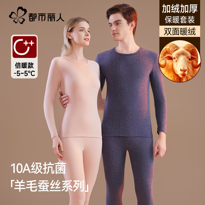 都市丽人保暖内衣加绒加厚男士秋衣秋裤套装秋冬防寒羊毛裤女生保暖裤衬裤 羊毛蚕丝女士保暖套装-粉色 L