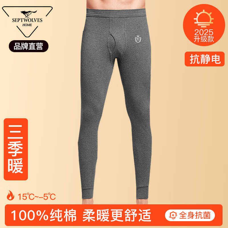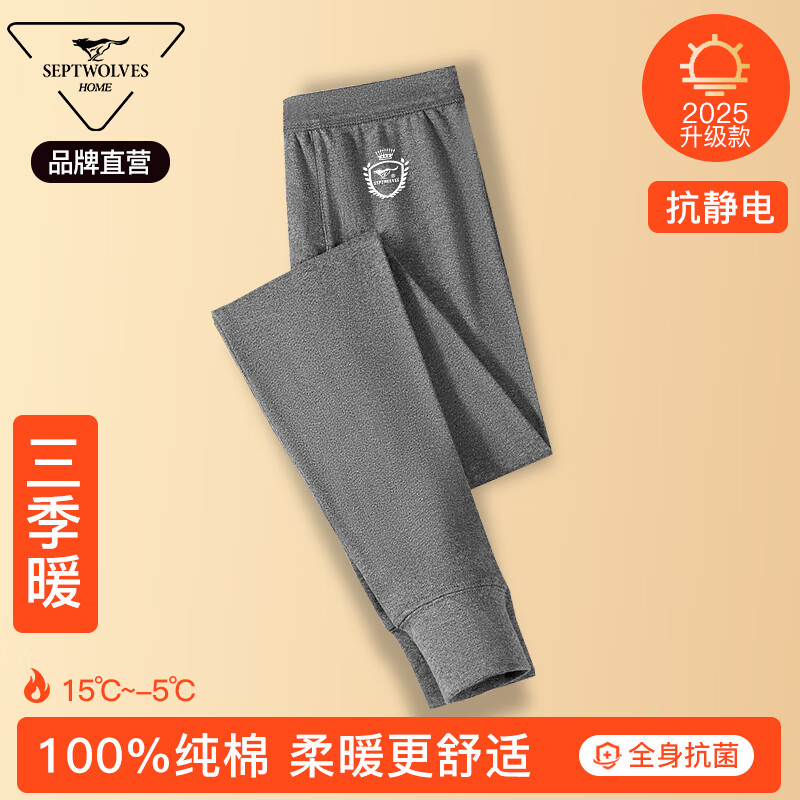 七匹狼【100%棉】秋裤男秋冬纯棉线裤全棉毛裤薄款保暖裤透气亲肤衬裤