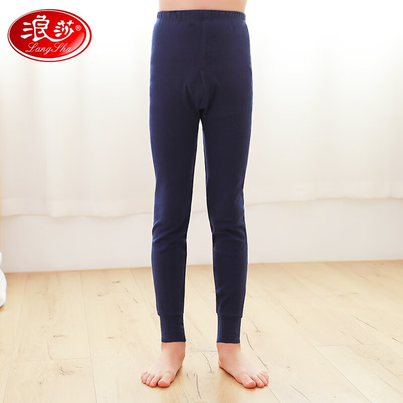 浪莎儿童秋裤男童纯棉单件儿童衬裤中大童棉毛裤薄款保暖裤 藏青色 150(建议身高140-150)
