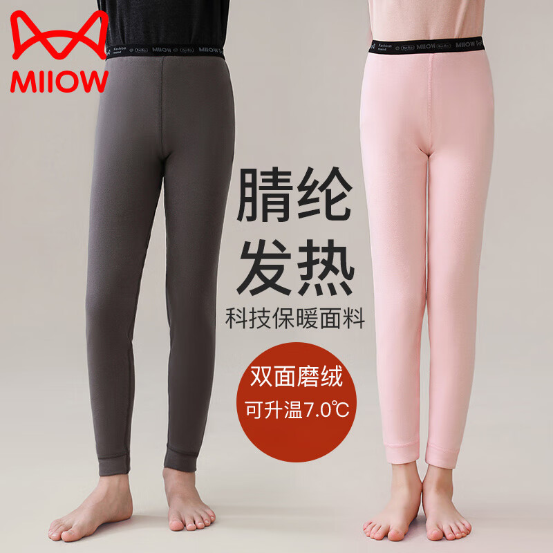 猫人儿童腈纶秋裤男童秋冬季保暖裤内穿磨绒打底中大童学生纯色衬裤