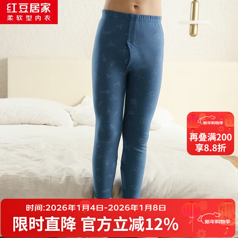 红豆居家(Hodohome)儿童秋裤纯棉男童棉毛裤中大童男孩保暖裤衬裤睡裤199海蓝160
