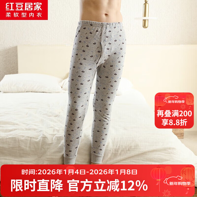 红豆居家(Hodohome)儿童秋裤纯棉男童棉毛裤中大童男孩保暖裤衬裤睡裤199城堡灰160