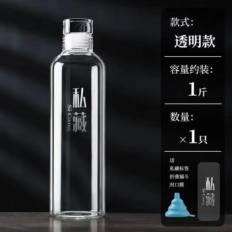 宿礼玻璃瓶密封瓶食品级泡酒专用空瓶子酒壶存装白酒瓶储酒容器罐 1只装玻璃盖500ml+标签+漏斗