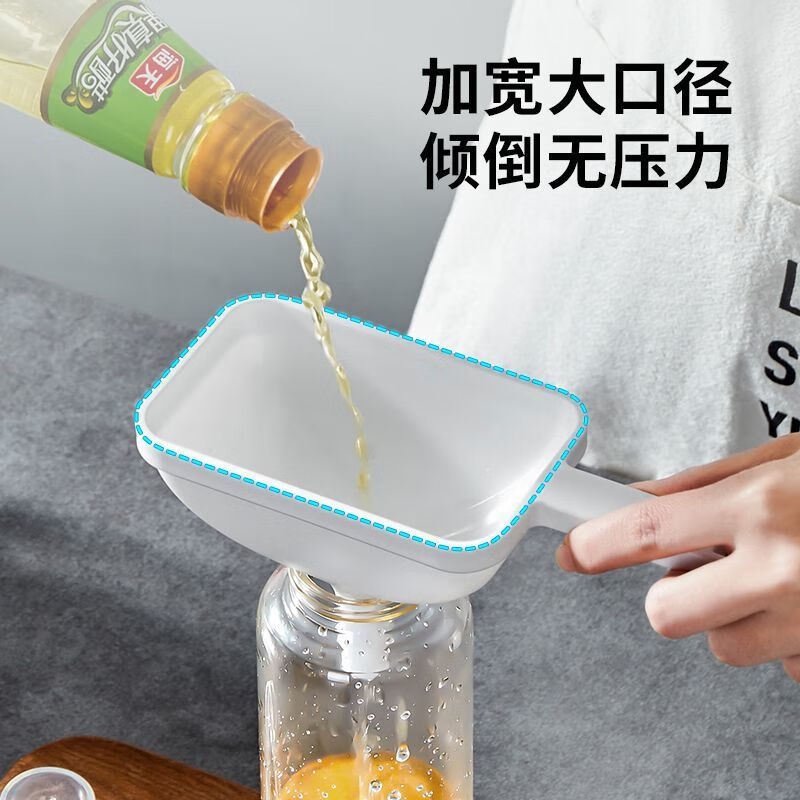 囤柒漏斗食品级日式漏斗大口径家用厨房分液塑料酒提酒壶方形分装瓶小 【1个装】白色-长柄手持漏斗